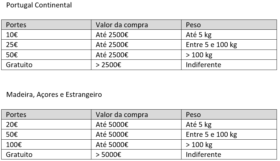 - Não incluem quaisquer impostos, nomeadamente o IVA ou taxas legais.